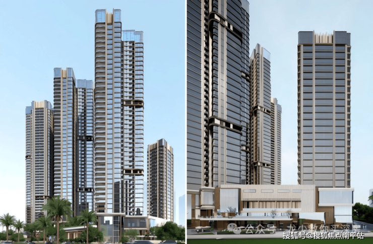 由四栋住宅组成,其中有1栋25层板楼,南北通透;2栋T3排布41-42层超高层,一户一梯,南向270°全景舱;还有1栋是46层的小户型产品,户型资料暂未公布。