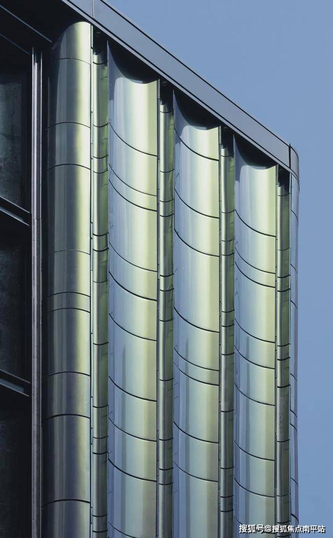 采用大量弧线工艺,包括转角玻璃阳台、弧形铝板、墙面线条和大门线条等,致敬了邬达克装饰艺术派的设计美学。
