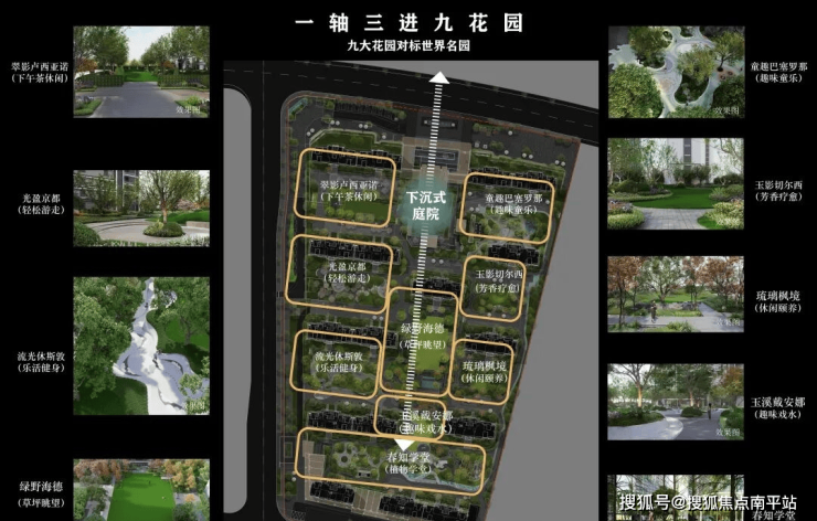 对标世界九大经典花园,通过“一轴多苑”景观格局,形成多维主题的全龄友好空间,营造移步景异、趣意盎然、游园入胜的诗意归家。