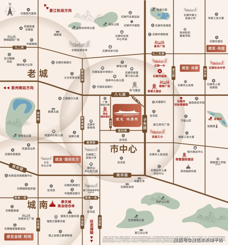 石狮建发·观唐府地处八七路与子芳路交汇处,城心黄金区位,可以说是含着金汤匙出生,稳坐资源头等舱;把眼光再放得远一些,这里隶属金曾片区,被列入石狮“5510”项目竞赛活动五大更新改造片区之一,未来城市规划拥有足够的想象力。