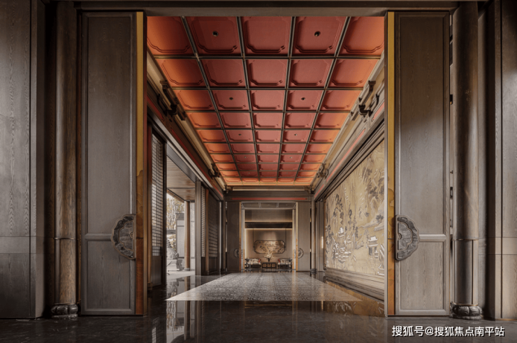 从唐风大门、雍雅戏台到辋川画境,三进归家如画中穿梭 ,还有贴心的设计, 动线里升级打造无雨落客区,即便遇到风雨天,依然享受归家的从容与尊崇。