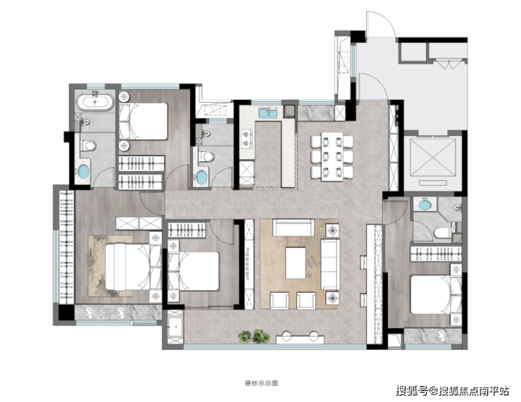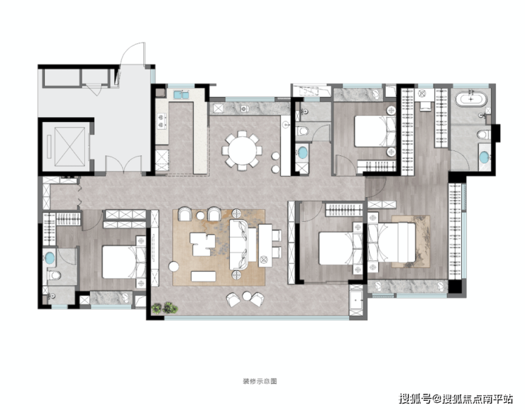 这套建面约132㎡4+1房,将空间利用的自由度大幅放大。