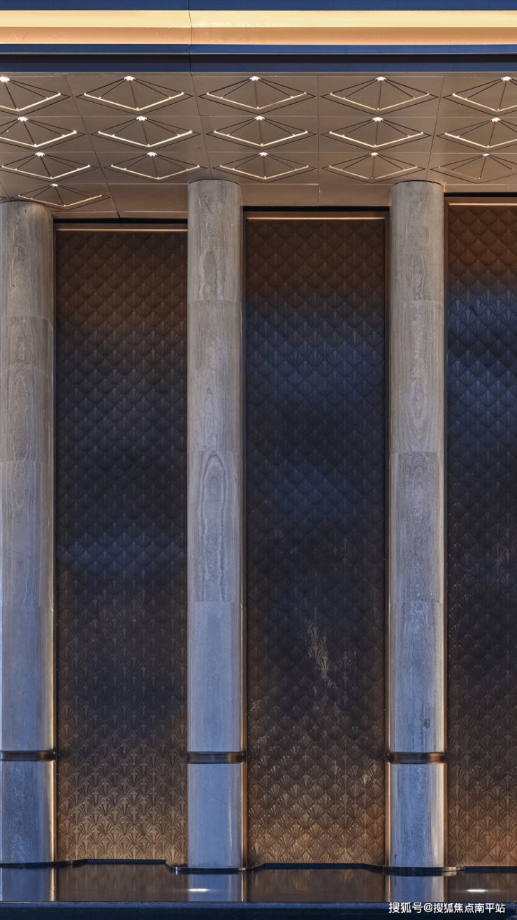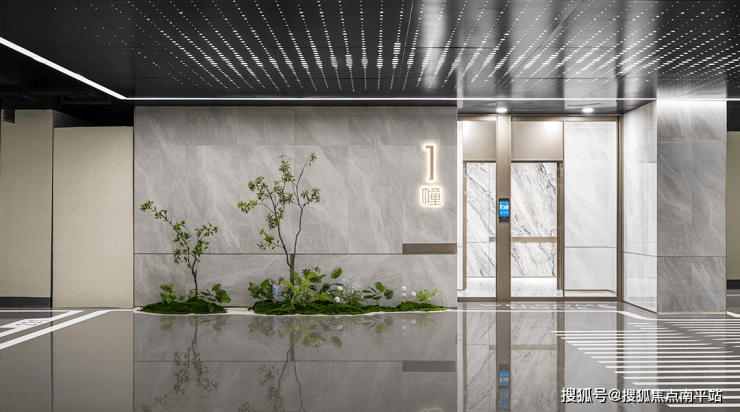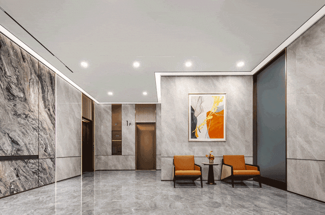 「国贸江南璟上」将酒店式尊崇归家礼序一路延伸到单元入户,从两侧的花团锦簇,到极具品质感的单元门头调性,到进门全自动玻璃大门、人脸识别系统配置,再到约4.2米层高精奢大堂,特设叠级吊顶灯带环绕,仿石材岩板与金属线条结合,配置主题艺术挂画及定制软装座椅,尽显非凡品味与极致尊荣。