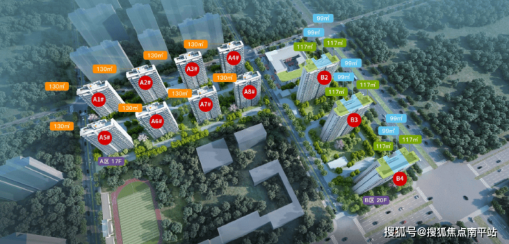 地块原本规划为A、B、C三个分区,规划了8栋17层住宅、3栋20层住宅以及1栋3层商业。由中南、银城、绿都三家联合开发,银城操盘。