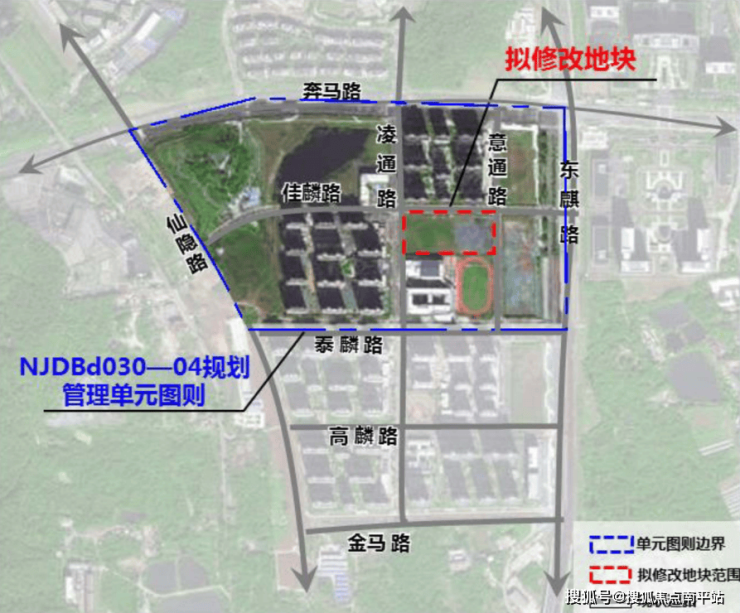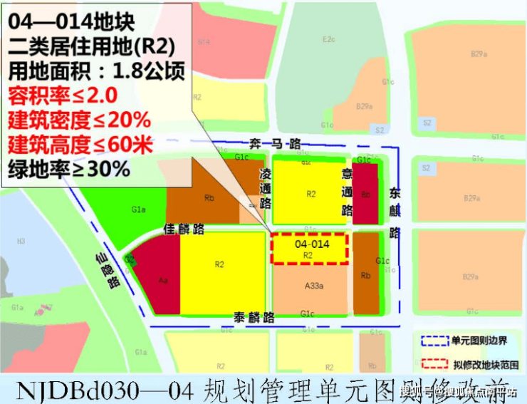 此次调规的NJDBd030-04规划管理单元位于江宁区仙林副城麒麟片区,东至东麒路西至仙隐路、南至泰麟路、北至奔马路,总用地面积约38.73公顷。其中拟修改范围东至意通路、南至汇通路小学、西至凌通路街旁绿地、北至佳麟路街旁绿地,用地面积约1.8公顷,现状主要为空地。