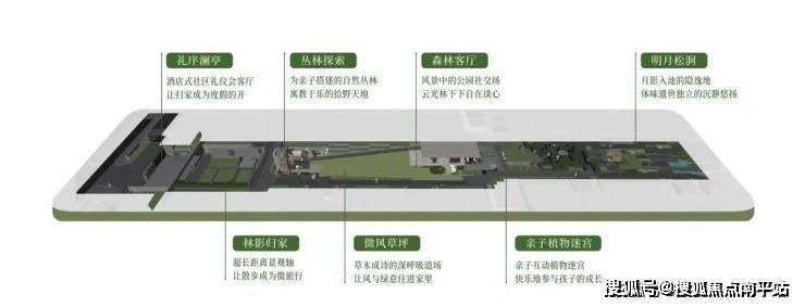 社区园林内设置【礼序澜庭】、【林影廊桥】、【丛林探索】、【微风草坪】、【森林客厅】、【亲子植物迷宫】、【明月松涧】、【疗愈庭院】、【健体公园】、【童趣空间】、【康体花园】等功能板块,为业主打造全龄友
