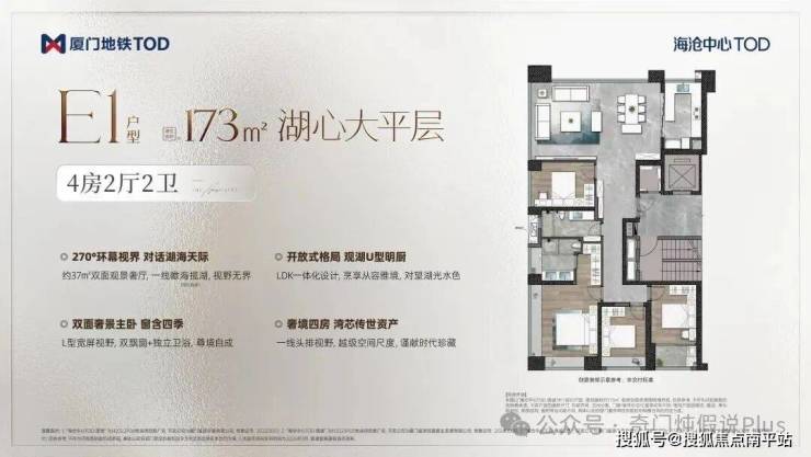 海沧中心TOD,在开年就以 两栋壹号楼王产品——173㎡湖心大平层+147㎡超四代空中墅 , 给出了厦门改善豪宅的全新答卷!