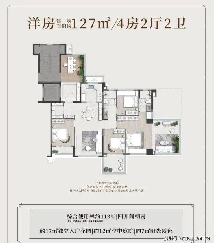 ★127㎡ 4房2厅2卫:空中庭院+双阳台,综合使用率113%;