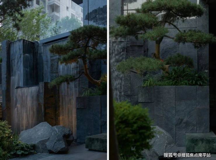 从大堂归家的第一视角场景展现出一幅松间叠瀑的画面,强化入则宁静的氛围感,叠瀑飞溅,层层跌落,激起涟漪舒卷,以自然之形,消弭内心的繁嚣。