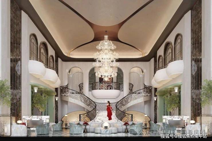 复刻厦门标杆项目建发・宸启瑞湖的海派美学基因:花瓣式艺术吊灯如飘落花雨点缀空间,南洋菱形釉彩地砖映出光影流转,Art Deco 线条与珐琅彩玻璃交相辉映,螺旋楼梯如当代雕塑般盘旋而上 —— 每一处细节,都是对卓越品位的精准表达。