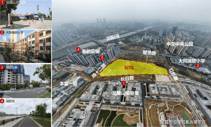 中建桃李九章二期位于岳麓山实验室的西侧,紧邻一期。南侧为美的云樾住宅项目,距离北侧约 龙湖芙蓉天街最近点约500m,道路拉通后距离地铁站最近点约950m。