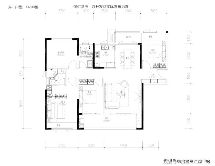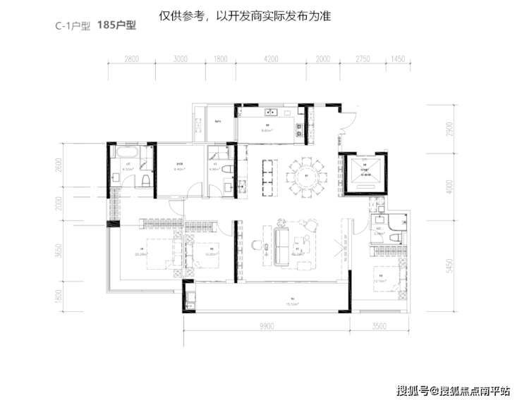 143㎡、110㎡、185㎡、128㎡户型建面规划如下(仅供参考,以开发商最终官宣户型图为准):