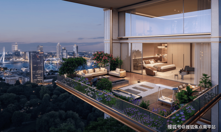 奇数层拥享“前庭后院”,偶数层设计约7.6米超大南向露台,将城市繁华尽收眼底。