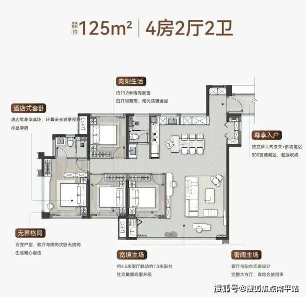 当然除了可变空间外,这两三年随着新房产品的内卷化,不少开发房企开始聚焦“少梁化”设计,通过减少内部墙体呈现“无边界”的居住体验。