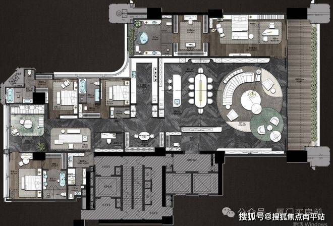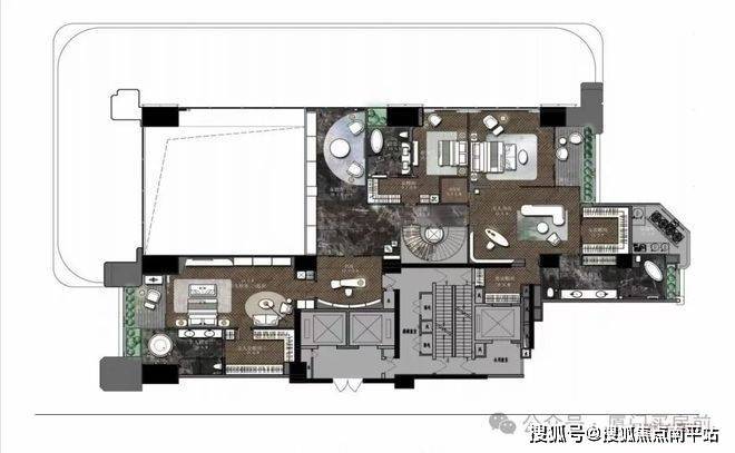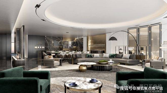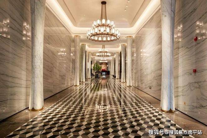 下沉式中庭水景园林、引光影到空间、外挂罗马洞石、满目极尽奢华;