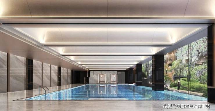 恒温泳池:特设标准级恒温游泳池,全落地窗对望中心园景,畅泳之间尽享山水园林诗景盛境。