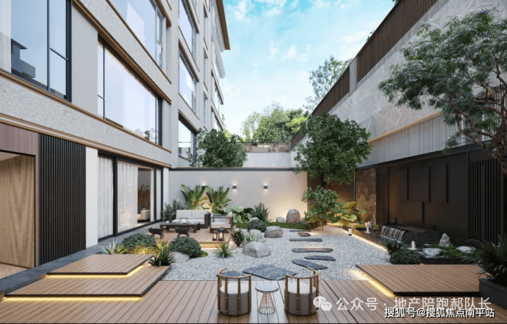 项目亮点:全首层架空设计亮点:5.8米地形高差。项目通过抬升首层5-6米,形成“地上车库+立体园林”的复合空间,首层实际相当于传统建筑的三层,实现隐私性与视野的双重提升。下叠户型:下沉庭院与“地上室”设计,地下室采光通风优化。上叠户型:星空露台与挑空客厅结合,形成全明立体墅。双首层归家体系:架空层与地面形成双首层动线,通过采光格栅、明亮灯光等设计打造“阳光车库”,颠覆传统地下空间体验。垂直园林体系,利用高差打造“一环两轴三院九园”景观结构,1700米慢跑环串联立体绿化,实现从2D到3D的园林升级。风格:现代中式立面,宋式飞檐与金属铝板结合,首层大堂采用海棠纹鎏金铺陈。