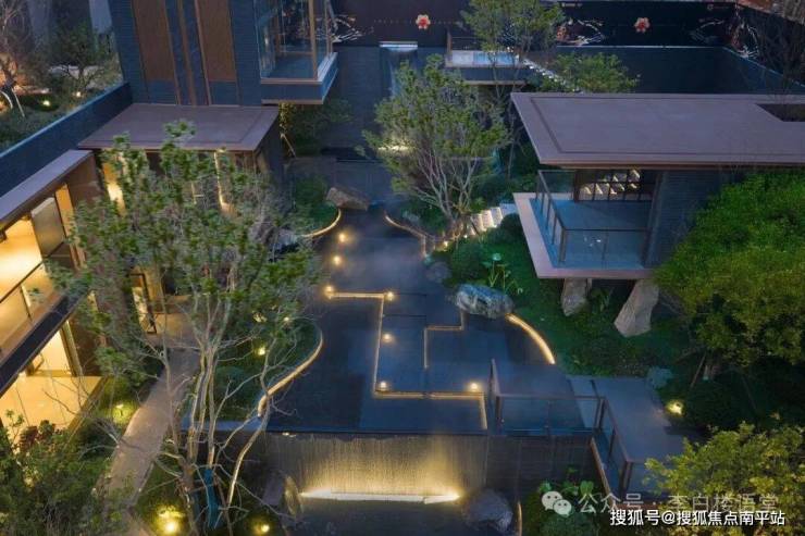 进入小区内部,借鉴古典园林理念,利用约9米高差,打造立体式东方古典园林景观,移步异景,一层一景。内部假山、叠水、名贵树植搭配隐于其中的休闲设施,颇有“身在此山中,云深不知处”的意境,与外部绿心相映衬,将山水大境如画卷般呈现。
