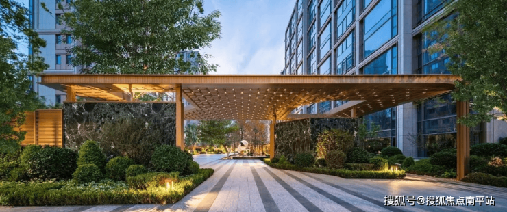 5、五进礼序——构建高雅艺术的多功能自然邻里空间;屡迹全球,遴选十数种世界鼎级奢石,园区奢石使用率达90%,营造奢隐美学艺境;约6500m²奢隐园境中,种植上百种植被,让鲜氧盈满日常;园区中央,孤植一棵约300多年的青檀古树全冠移栽,守望家族传承。