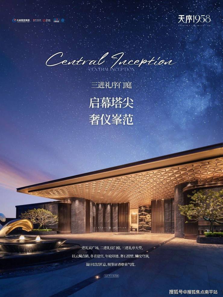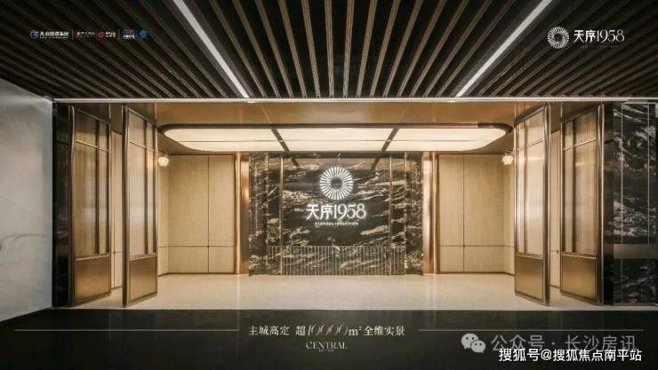 >三序:ZUI尊贵的归家排场一序:三进门庭“云珮叠水”礼宾广场,以长沙博物馆镇馆之宝、源于西汉的“双面透雕龙凤纹玉环”为灵感,高定门第;超6米高星曜挑檐,3000片鎏金鳞纹铝板,耗费2000小时手工拼接,淬炼匠心门庭;约5.8米挑高“奢金”礼序大堂,巴西进口宇宙金奢石打造双面照壁,揭启归家序曲。
