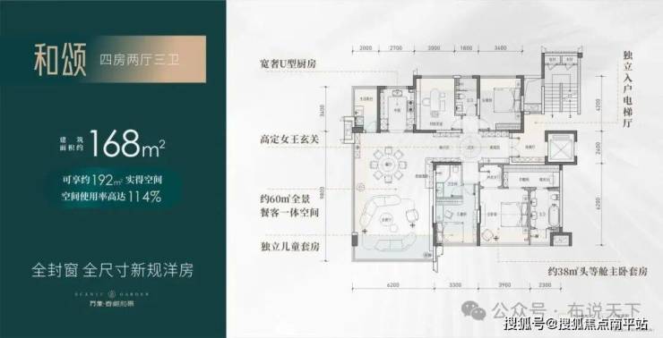 端厅设计, 270度采光、通风,在超高窗墙比的加持下,拥有餐客厅与窗外最大化无界观景视野。