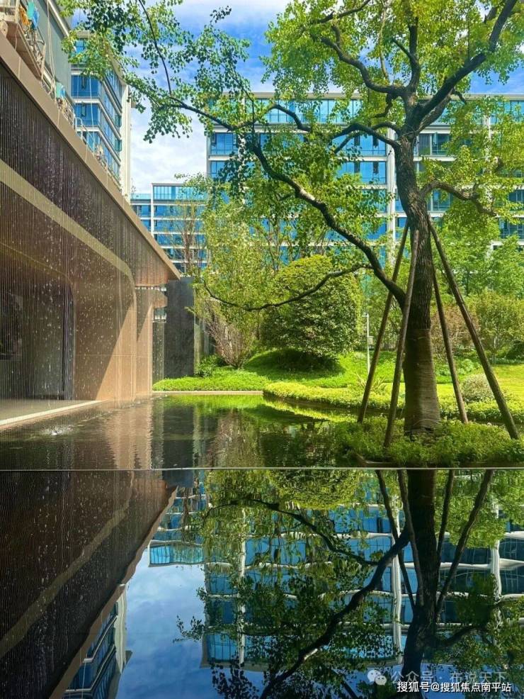 内部园林规划“ 一心·一轴·五园”多维景观,融合花境主题,营造星级酒店式森系景观。难得的是,大量使用 “树木全冠移植”手法。