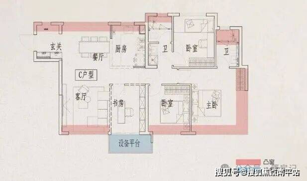 110㎡高层朝东边套,可自由切换3房4房格局;
