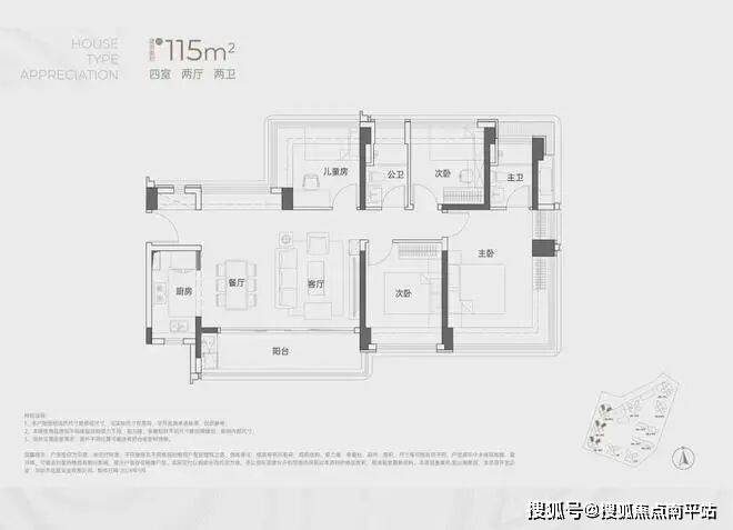 建面约115㎡4房2卫