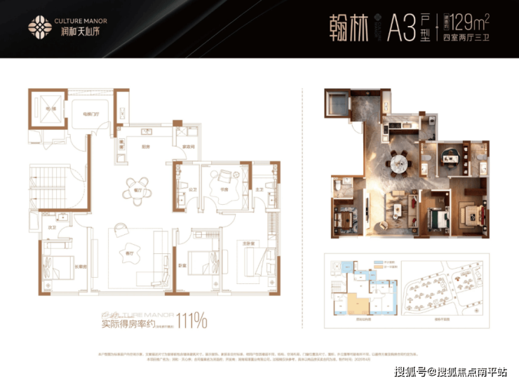 润和天心序直接把 “刚需友好、改善品质” 焊死在产品里,建面约 103-130㎡,全系四房设计,得房率直接干到 107%-111% ,相当于 “零公摊 + 白送面积”,在新规时代,这简直是 “逆天操作”!