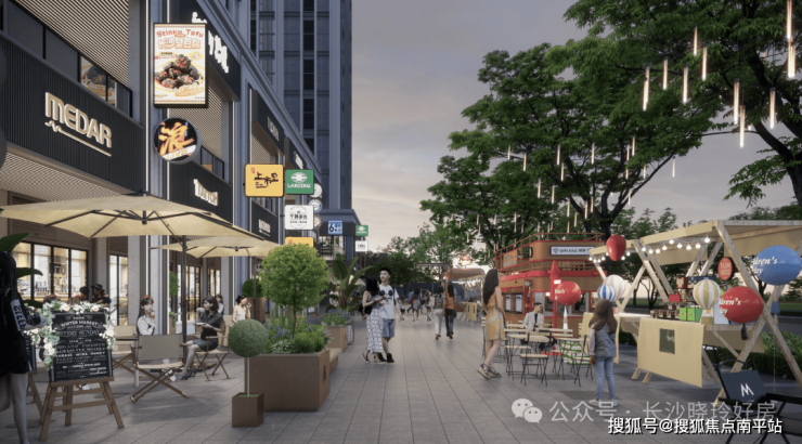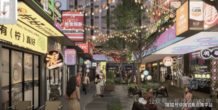 5000方商业街未来招商以70%餐饮为主,30%为社交及生活配套。计划打造为湖湘美食文化新地标 ,零距离‘吃透’长沙烟火气。