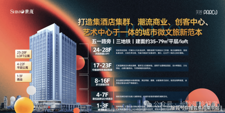 赋能:携核心班底,以艺术IP+潮流基因,为本项目打造长沙首个艺术潮牌高端酒店,同步引进中高端商务酒店、特色精品酒店首店,打造项目酒店集群。