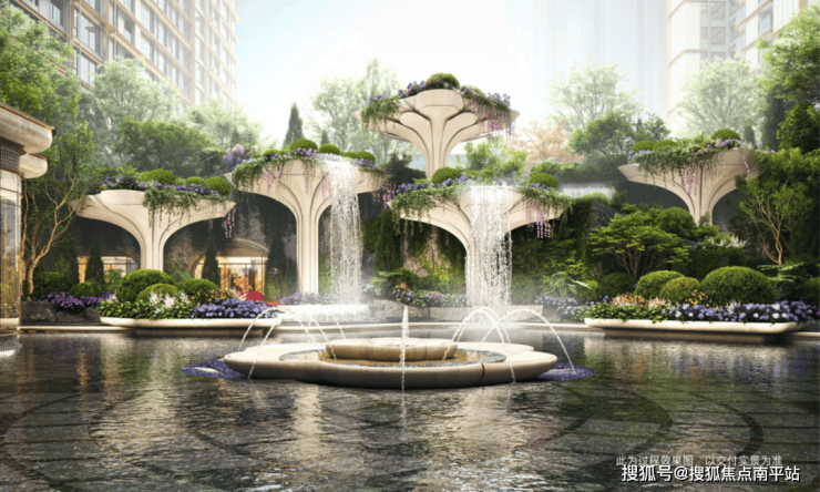 园林部分则是项目更为出彩的部分,简直可以用美轮美奂、人间仙境来形容。据悉,项目规划 有7000㎡的空中垂直花园,再加上中央水景显得非常灵动。