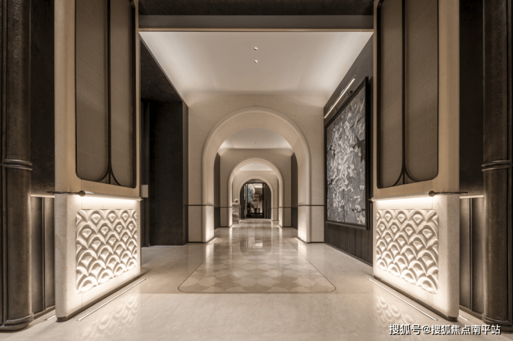 6000方文化会所,由CCD设计,以珠江水韵为灵感,艺术为点缀,巧妙串联起每一处空间。 拥有归家双大堂和1800方的中心水庭院,两翼打造了会客、休闲等功能区。