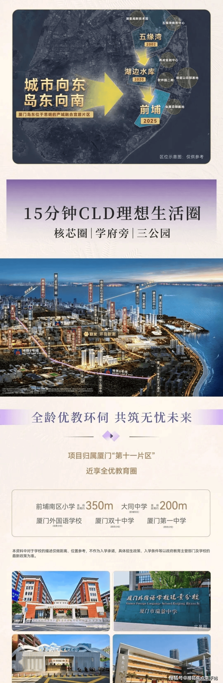 联发·环岛新澍占位前埔板块,归属“第十一片区”,近享厦门外国语学校(瑞景分校)、厦门双十中学(思明分校)、厦门第一中学(思明分校)等全优教育圈,前埔南区小学直线距离约350m,大同中学直线距离约200m。坐享山、城、海三重景观界面,举步舒享悦动园等三园。思明东近会展、通山达海三公园、100%一双外、临地铁、近环岛路,