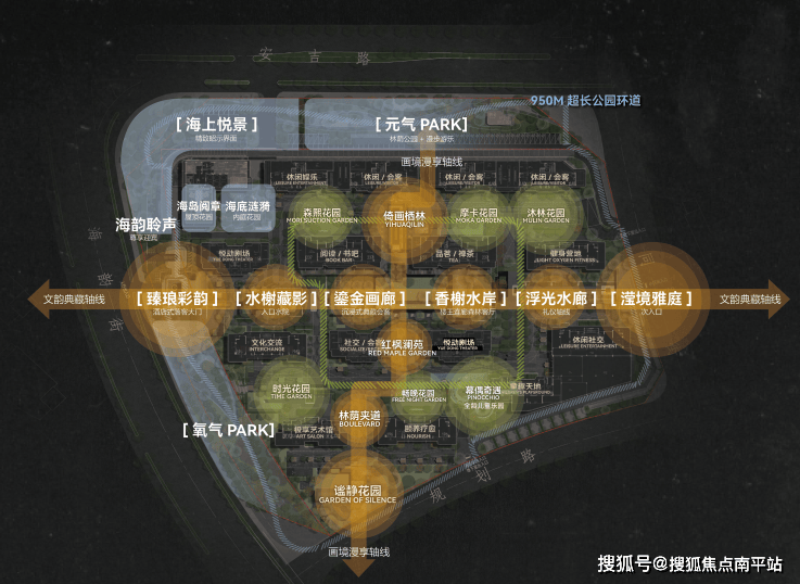 社区规划上,酒店式双主入口,恢弘迎宾界面极具排面;约5万㎡高定园林,构建「一带·两轴·一环·六园·十一馆」景观格局,涵盖下沉式庭院、全景式鎏金画廊、约105米楼王央境艺廊等多个人文艺术场景;整个社区约1472㎡的全域水景,呈现出休闲惬意的滨水度假生活场景;同时,在社区内打造约2500㎡「乐高积木式」架空层泛会所。