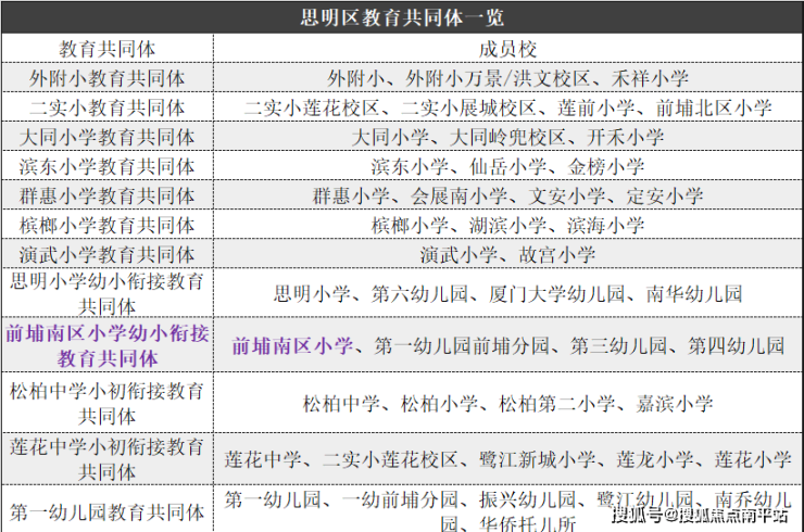 前埔南区小学很牛,从官方角度就能窥见一二。如思明区2022年成立了两批教育共同体,前埔南区小学是核心校,虽然是幼小衔接教育共同体,但不需要任何小学教育共同体帮扶,而是被委以重任,自成一派。
