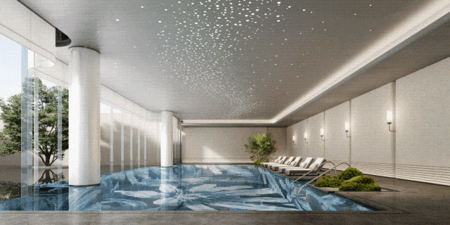 还请来了岭南古树专家团队,全冠移植数棵百万级珍稀罗汉松,带来媲美东京安缦酒店的庭院古松氛围。从选材到细节打磨,无不是极致匠心。超2000㎡的雅奢会所,对标深圳南山香格里拉超五星酒店重金打造。不论是在无边际星空顶泳池畅游,在健身房挥洒汗水,还是在会客厅、行政酒廊社交、会客,抬眼间都是流动的自然绿意。