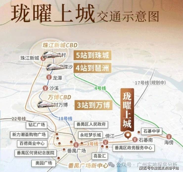 项目距离地铁3号线东延段石碁南站约600米,通过3号线可直达珠江新城、万博CBD等核心商圈,无缝对接18号线、22号线,半小时内可达市中心,一小时畅行粤港澳大湾区。