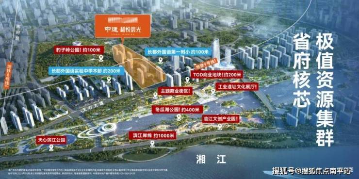 中建·和悦宸光位处省府板块核芯地段,占据豹子岭山体周界最后一块住宅用地,一线拥享不可复制的原山胜景,周边冬瓜湖、约2.37公里蜿蜒江岸线、天心滨江公园及湘府文化公园等江山湖园汇聚,景观资源已然鼎立省府极值。