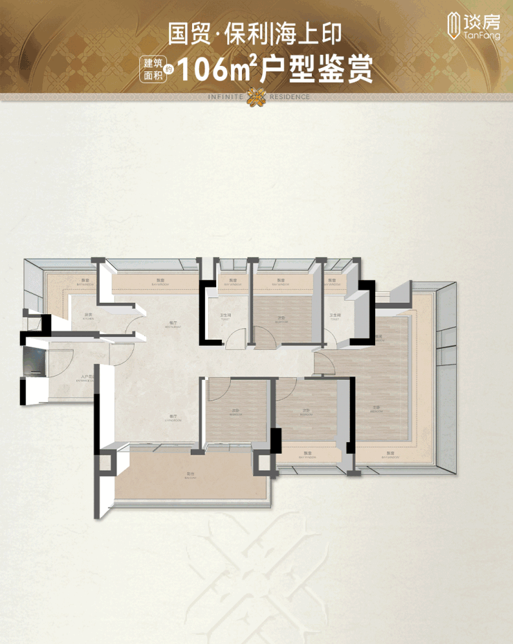 建面约106㎡户型,CBD百平改善范本