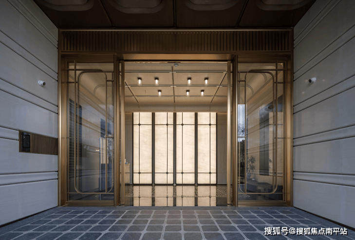 横向大雨棚搭配石材柱体与香槟色铝条,复刻海派东方意境