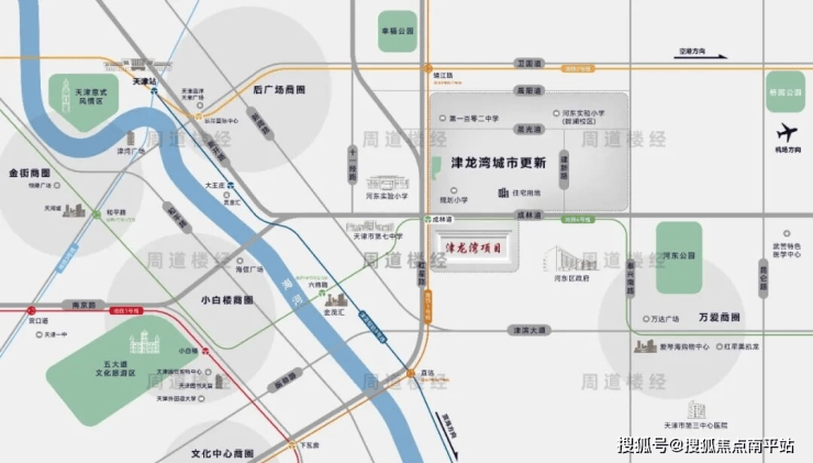 七、双地铁(4/5号线)换乘站作为核心枢纽,构建起高效通达网络:无需换乘即可直抵河西、和平7大商圈,从河东万爱商场到和平路恒隆广场,从河西万象城到金街印象城,繁华商业触手可及。