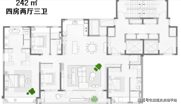 户型配置:建面约155/185/240㎡,全系大平层