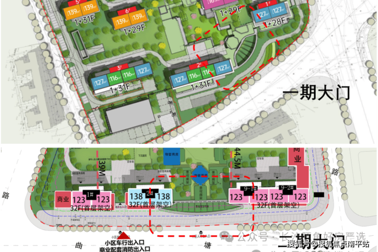 3. 二期没有布置单独的幼儿园,仅有260㎡社区用房,大概率是共用一期的幼儿园、社区用房,不理因素更少,规划更纯粹一点;