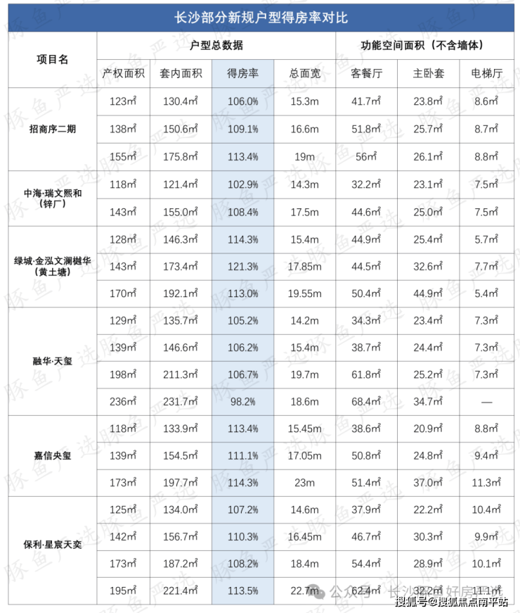 户型新规经历了放松,再收紧之后,不同面积段边户的得房率稳定在105%~115%之间左右。