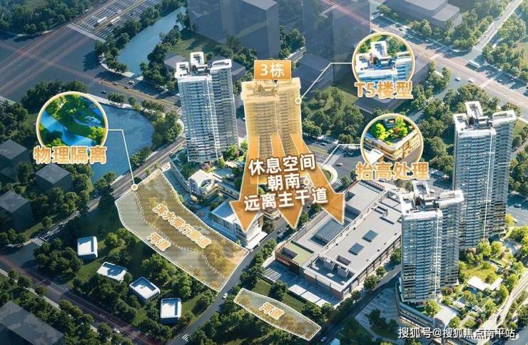 嘉悦云启3栋通过“T5楼栋+全南向布局”的科学设计,将休憩空间与公共区域都朝向南侧,且直面绿化廊道和河道,楼间距奢阔,能有效隔离主干道车流噪音。