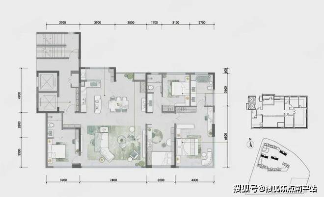 产品方面,主打新规户型,打造建面约106-127-143-175㎡环幕奢宅,超高得房率。