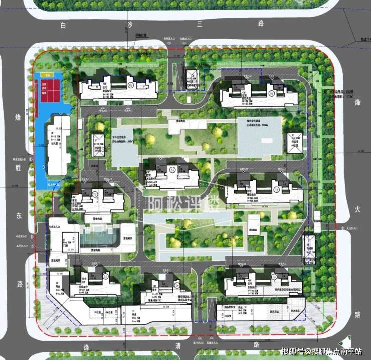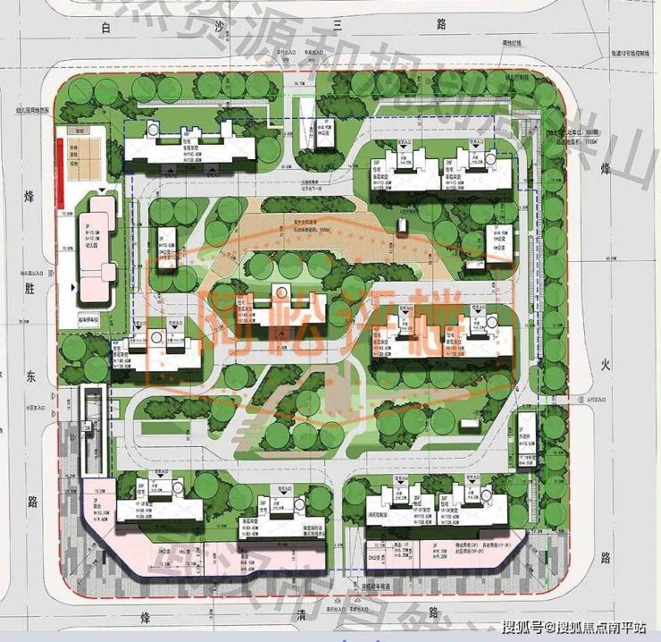 从平面图可以看出,该项目地块比较方正,所有住宅楼栋均为正南北朝向。另外,可以看到小区内的园林绿化以及相关设施也有明显调整。