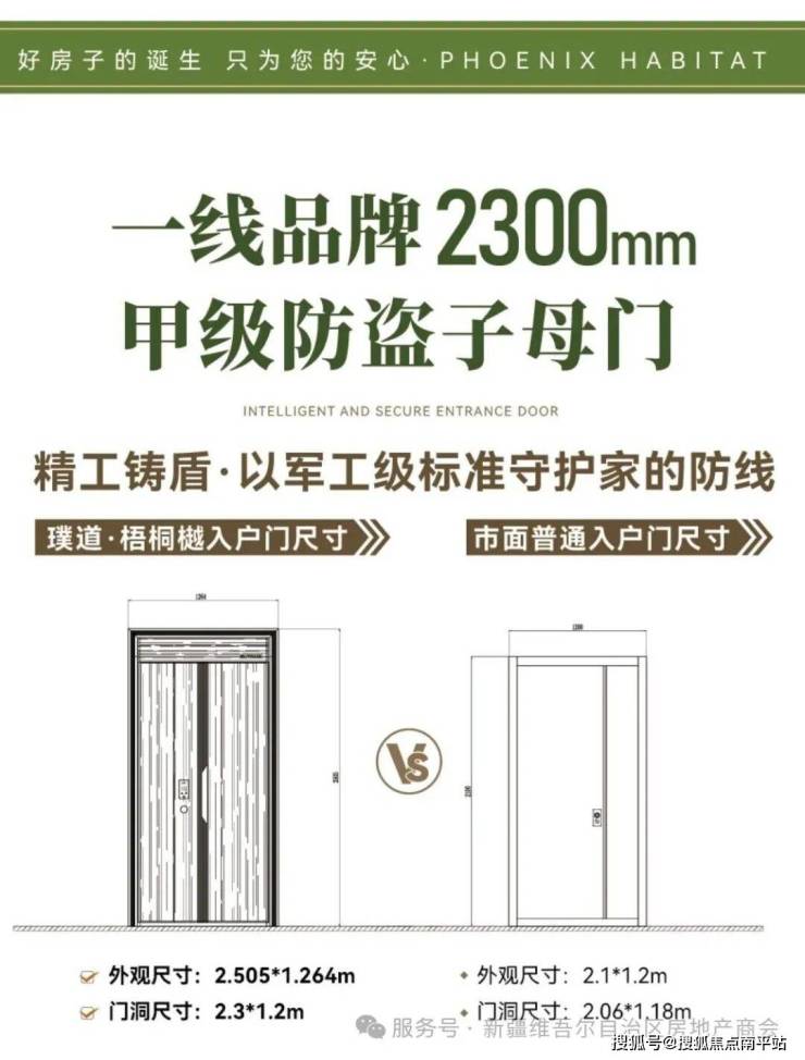在入户门配置上,项目采用“甲级防盗+乙级防火”双标门体,门体高度较常规产品提升40公分,整体成本超出市场普遍标准2–3倍,在安全性与整体质感上实现双重突破。
