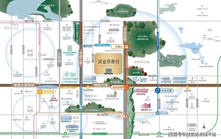 【深业翠微谷】毗邻高新大道与光谷四路,占据万亿级经济命脉与生态景观发展的"黄金十字轴芯",繁华与自然交汇地